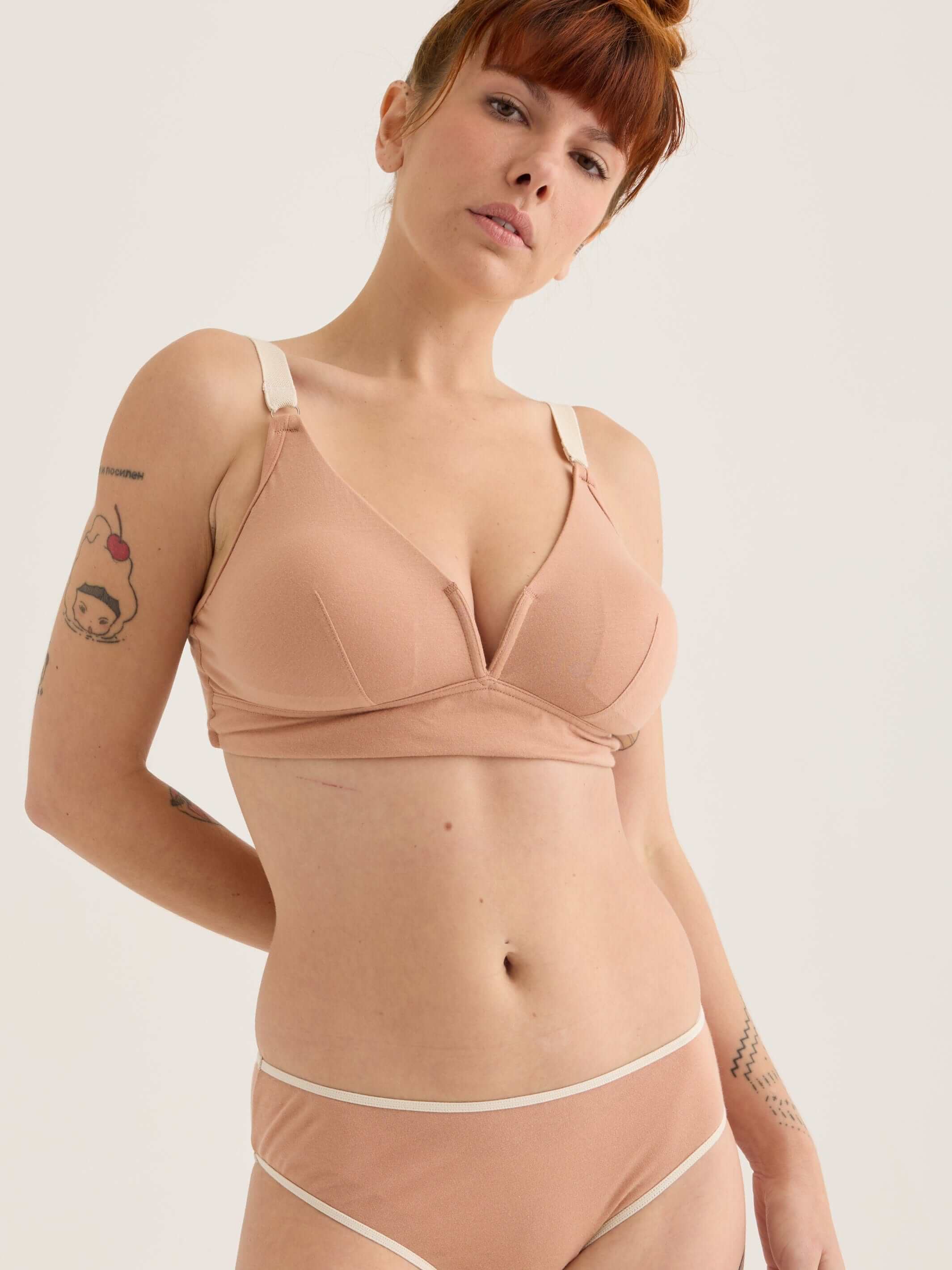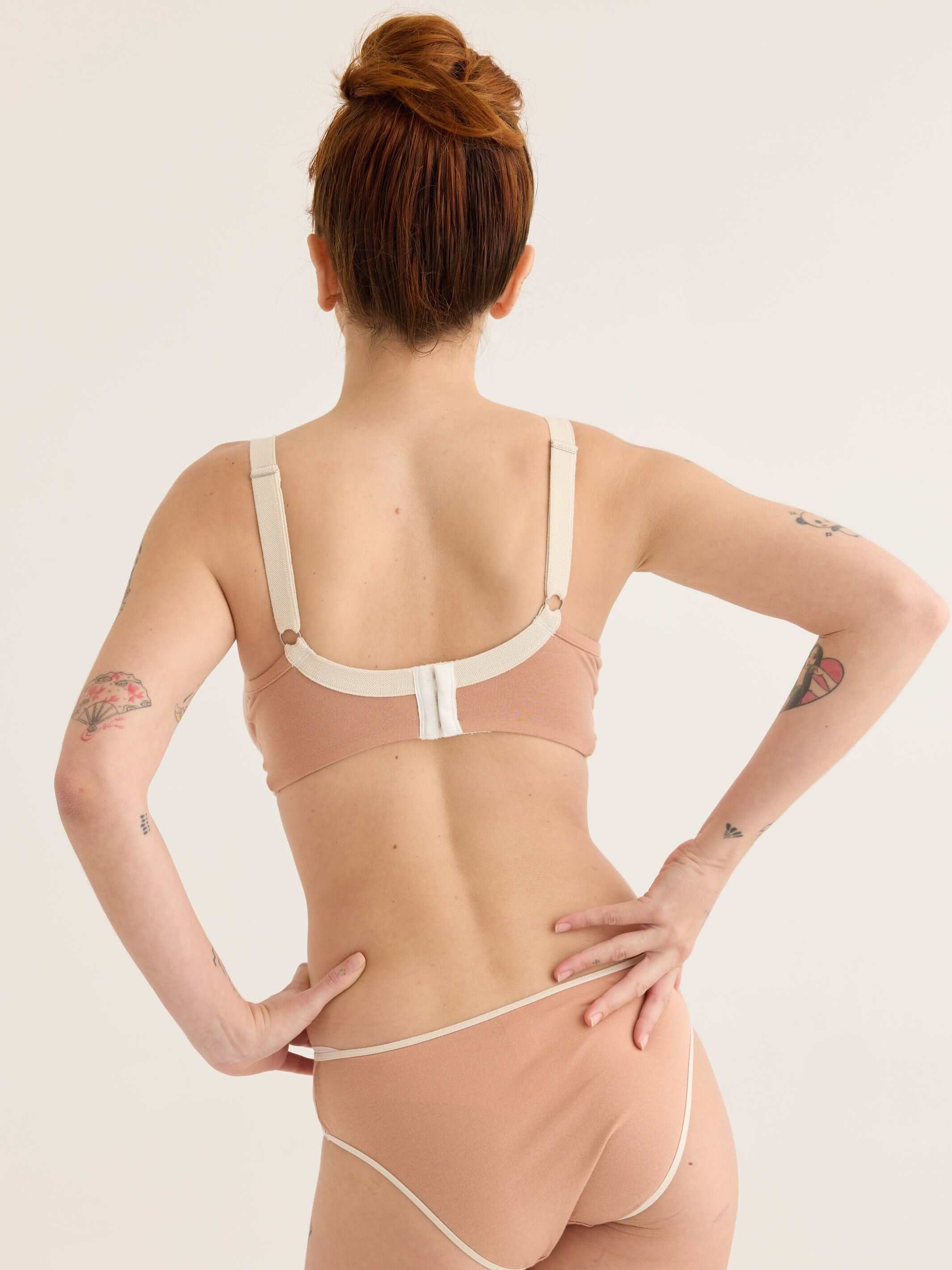 Our organic cotton bras in a range of colours are made from organic cotton knitted and GOTs dyed here in Australia.