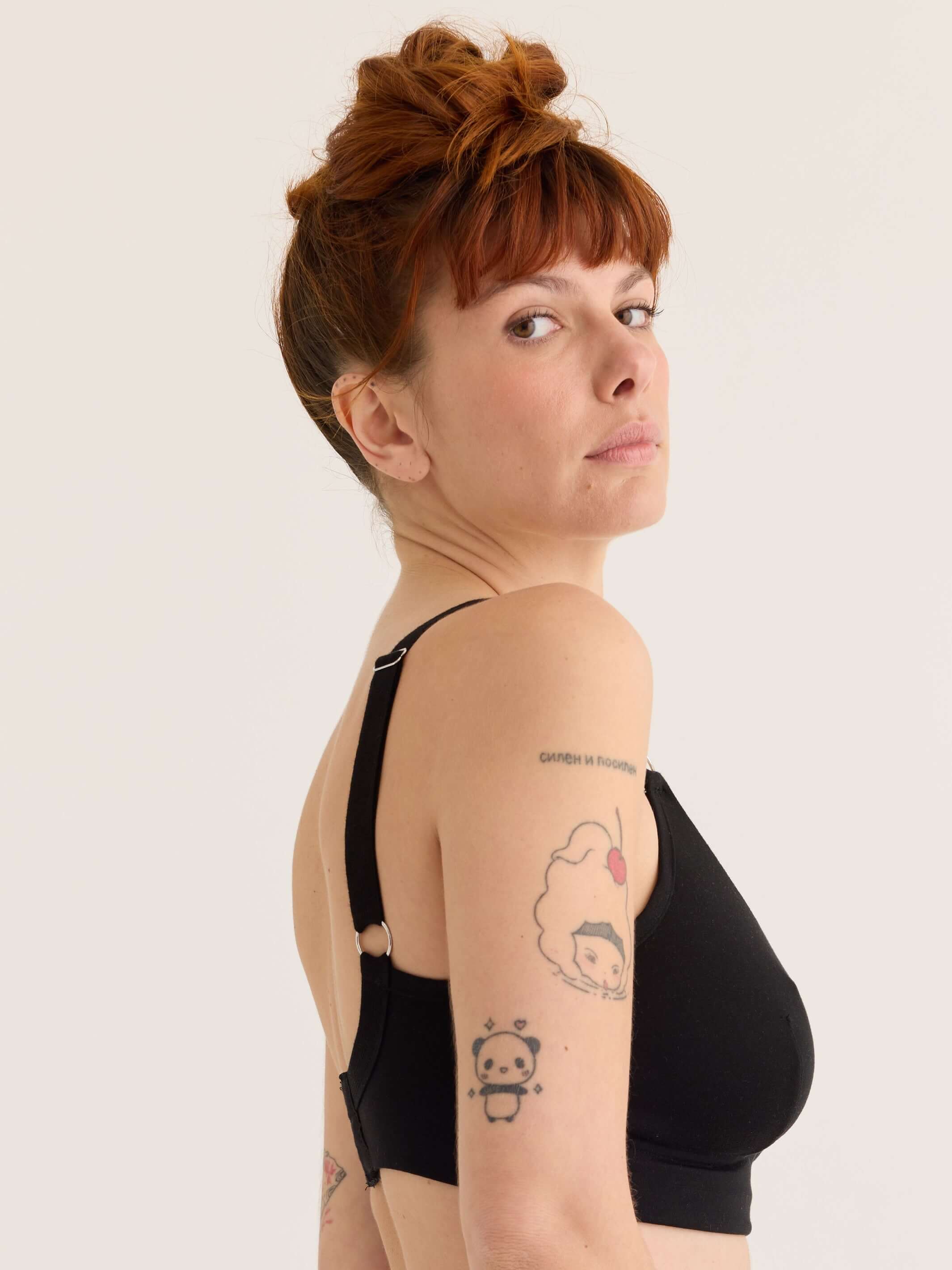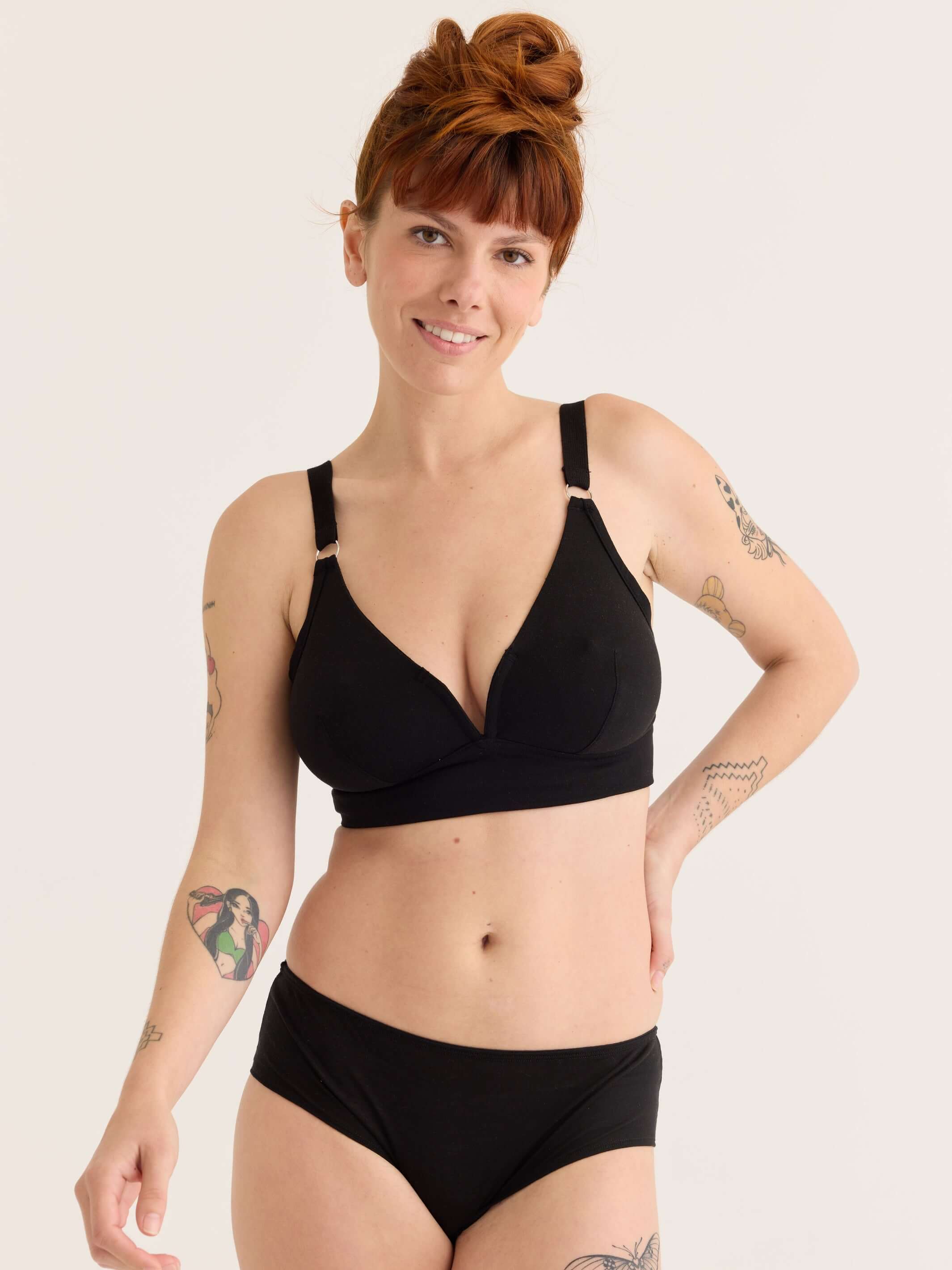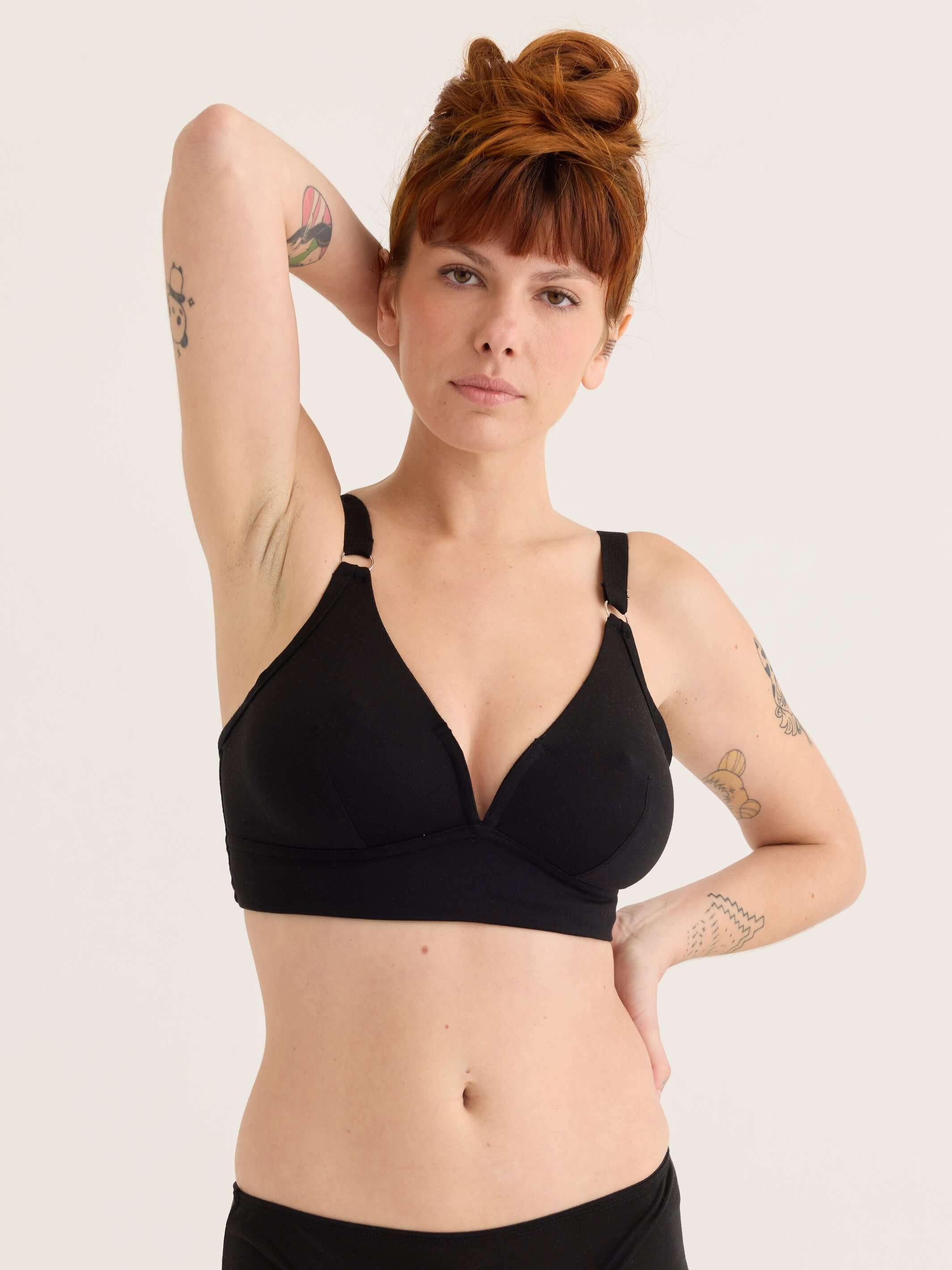 This is a re-make of our original black tencel V bra, a fast favourite, new and improved with stronger elastic strapping and made in our new factory to the highest standards.